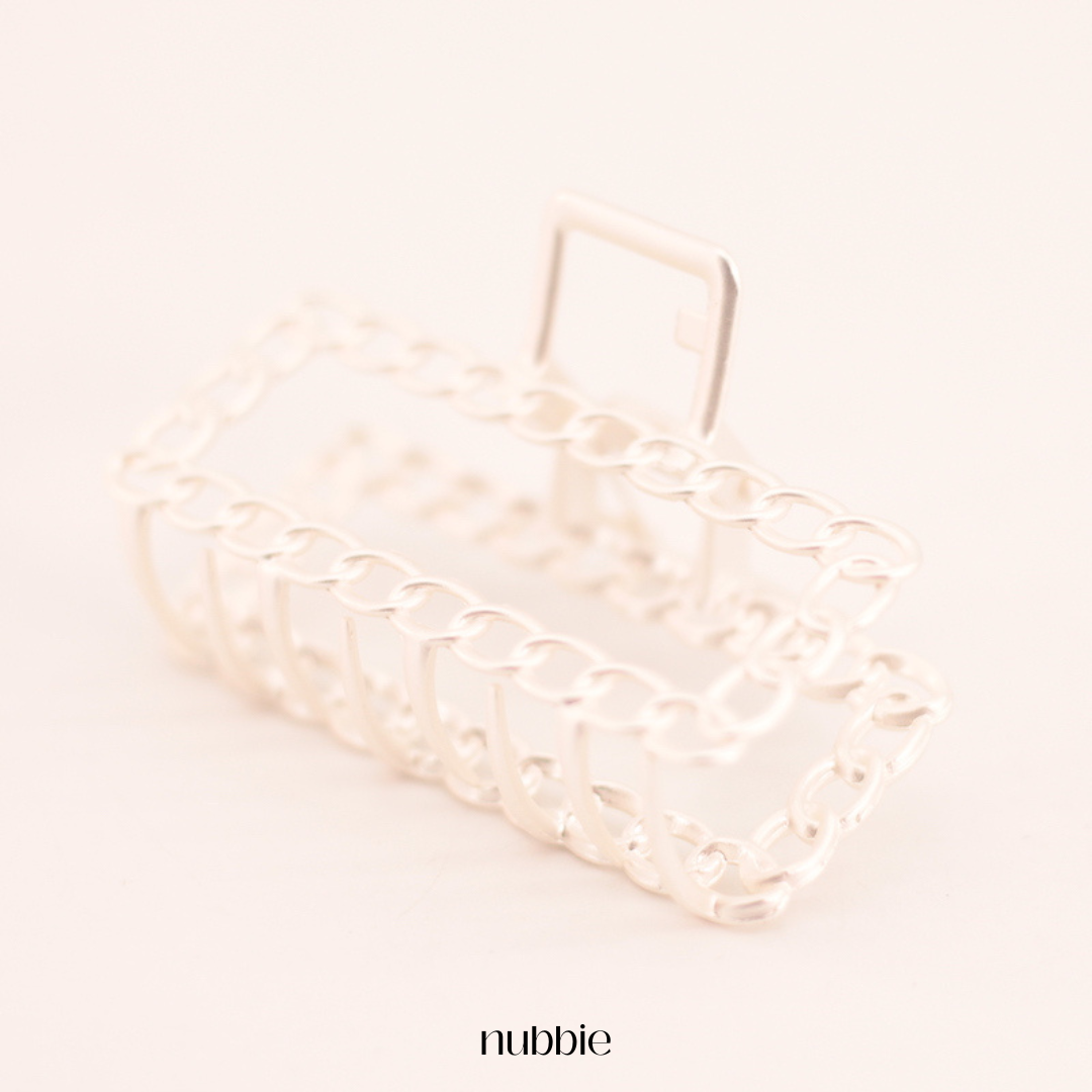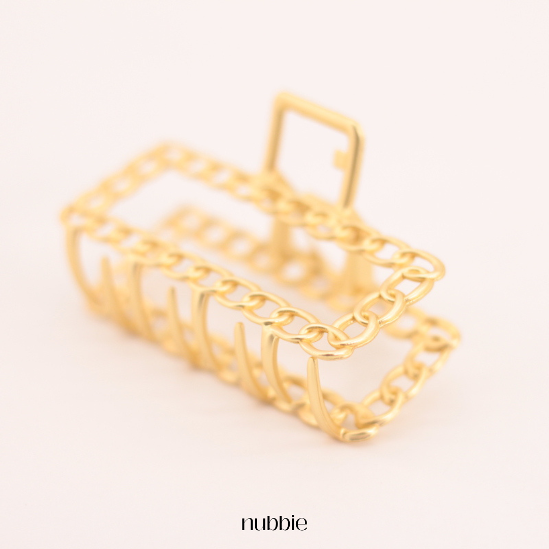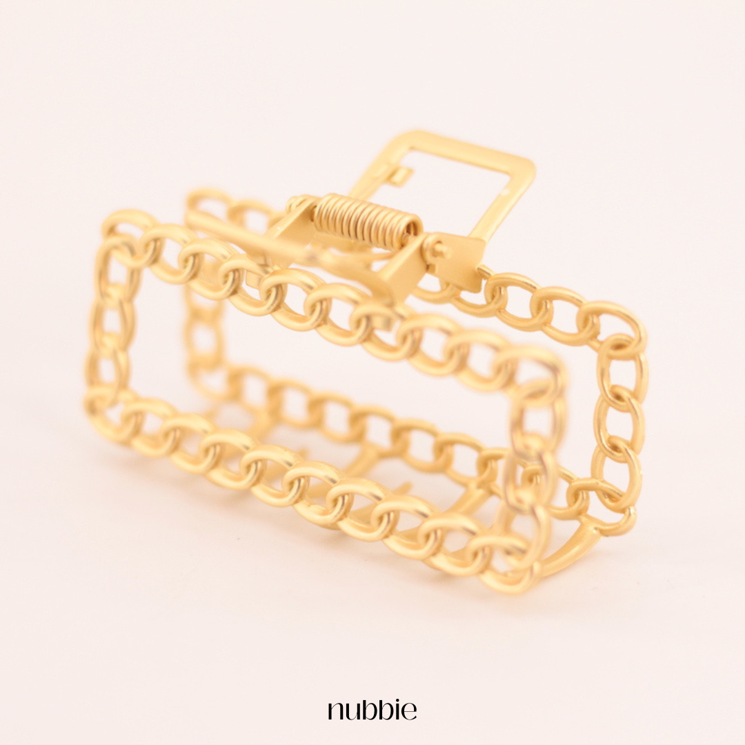 Elaborada con materiales de alta calidad, esta pinza garantiza un cierre firme y seguro, manteniendo tu cabello en su lugar sin esfuerzo. Su diseño de cadena le da un aspecto sofisticado y moderno, lo que la convierte en el accesorio ideal para cualquier ocasión, ya sea un evento formal o una salida casual.